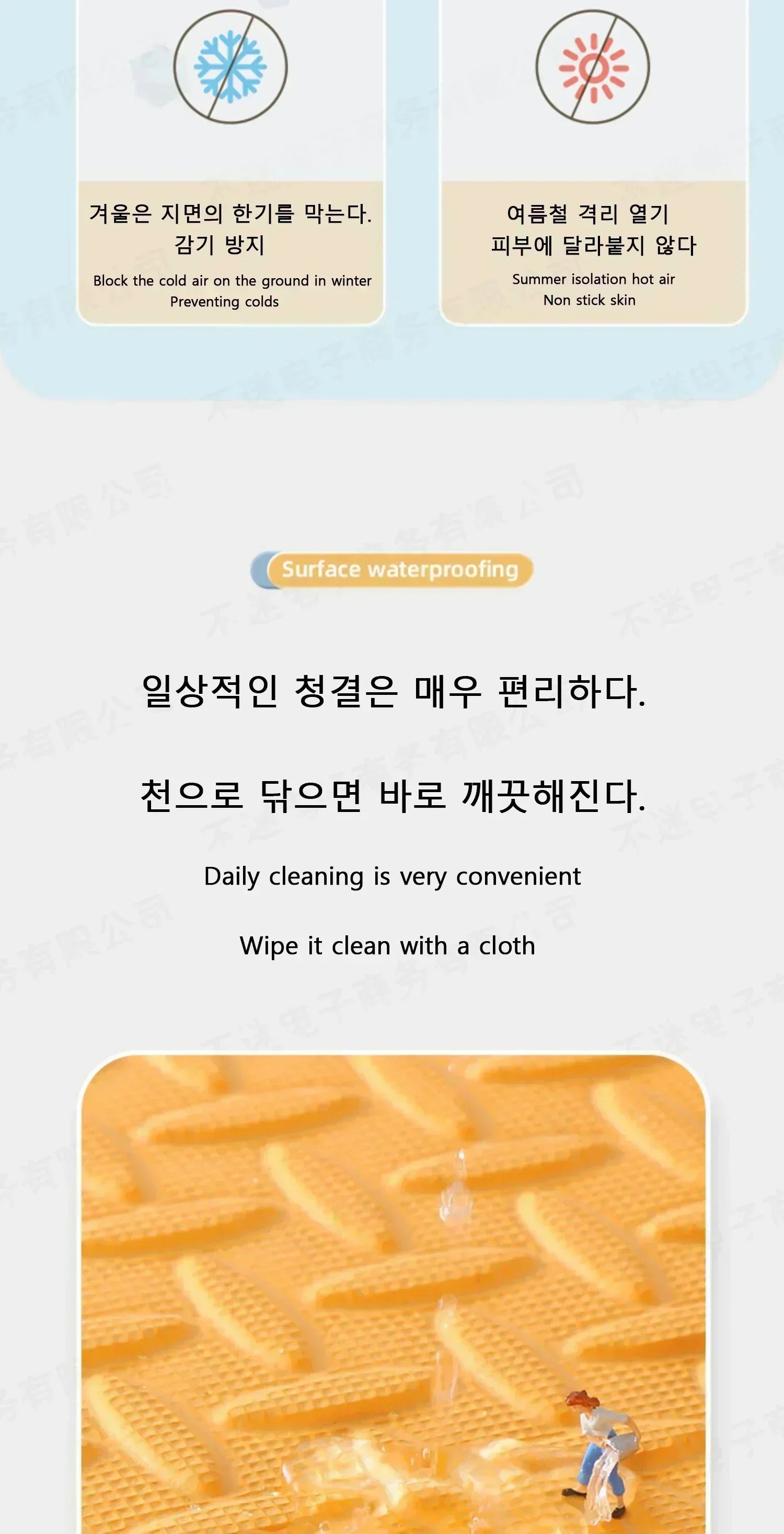 【Easy to clean】The play mat is able to effectively waterproof, only need to wipe gently to clean, can do dining, drinking and other activities on interlocking floor tiles, save your cleaning time.